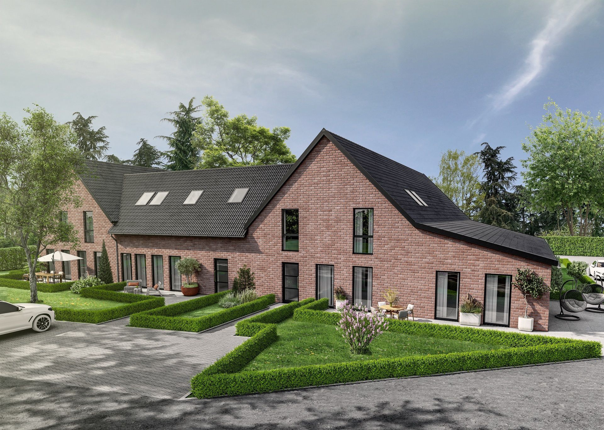 A characteristic square farm with a classic brick facade and charming courtyard offers the ideal basis for a high-quality residential complex with a total of five residential units on a 5885 m² plot.