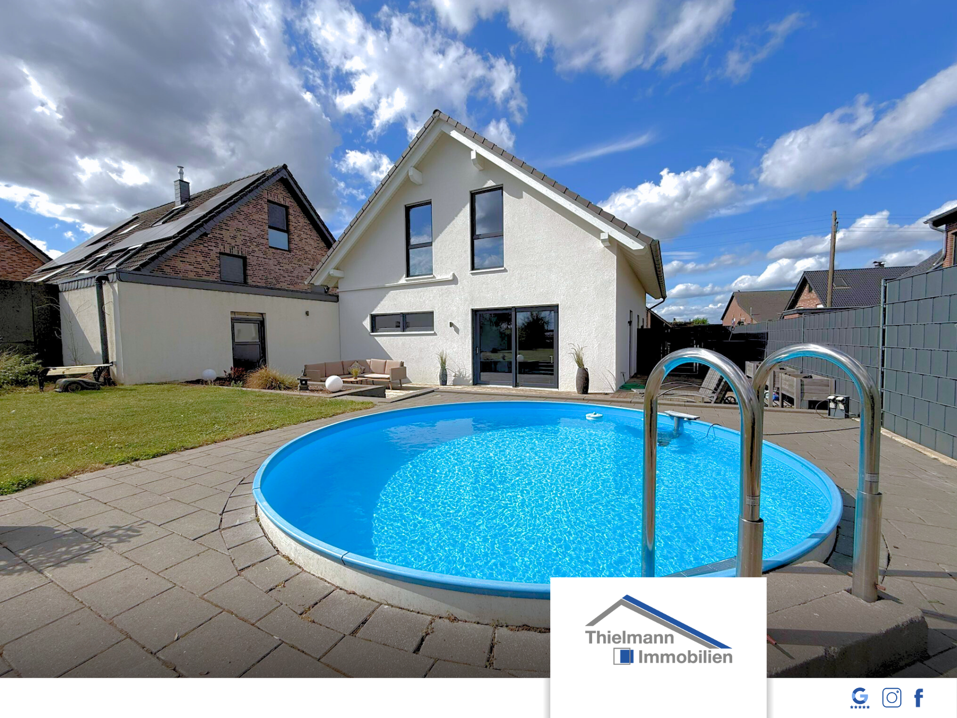 ***VERKAUFT: Modernes Einfamilienhaus mit weitläufigem Garten, Pool und idyllischem Blick ins Grüne